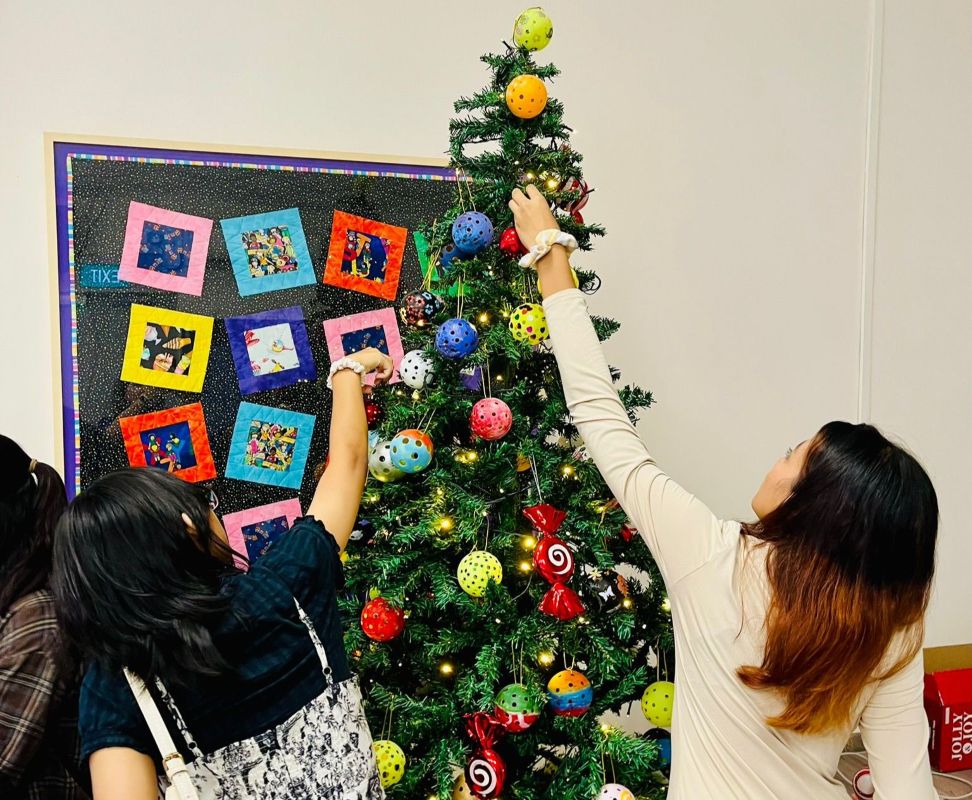 As Linda Ong and Michelle Lim led the decorating session of the tree gifted by Michelle, the girls dressed it with repurposed pickleballs they had painted during earlier volunteer sessions.