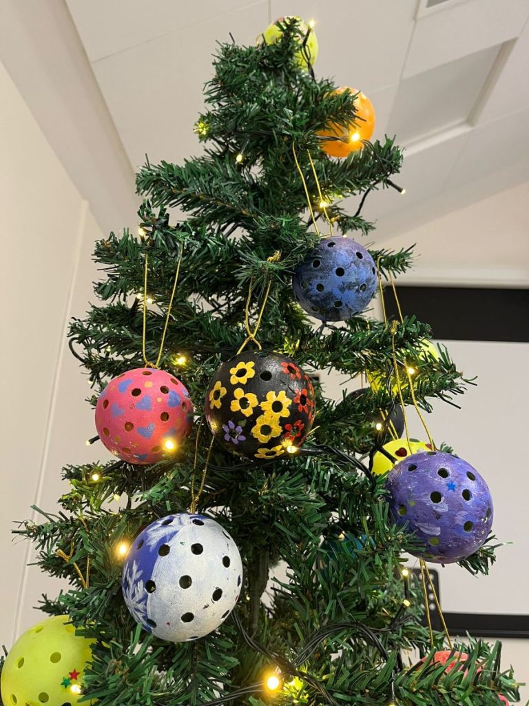 “Seeing their own artwork become part of the festive décor brought immense joy and ownership among the girls,” said Linda Ong. “It is also a good reminder for us that cracked pickleballs, with some embellishment, can be transformed into something beautiful and useful, even if they cannot be used for games anymore.”