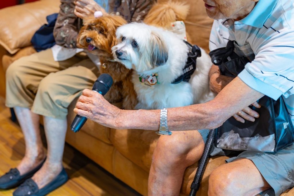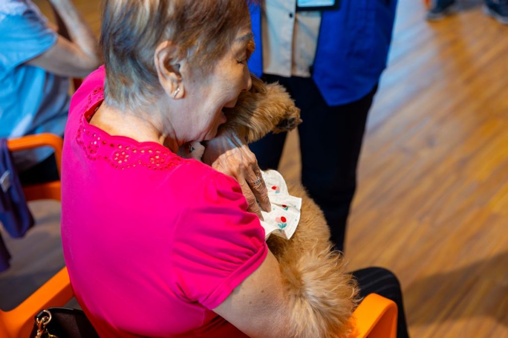 “I miss my own dog, so when the therapy dogs come, it truly brightens my day. We cuddle them, feed them, watch them play, but really, it’s their gentle presence that comforts us most. They bring a warmth we always welcome,” said Madam Mary Tan (not her real name).